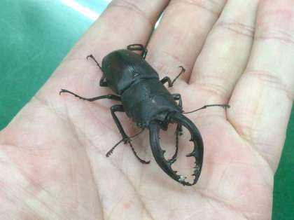 夏の生き物のクワガタもいました。ミヤマクワガタ、ノコギリクワガタ、コクワガタ。ゲンジボタルも見つけました。学校でも、夜に、輝くホタルを見ることができそうです。