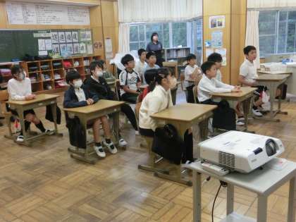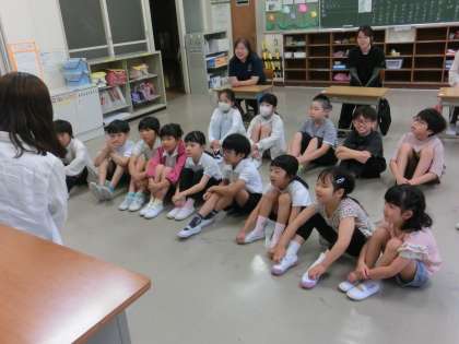 心配された天気の中、読み語りボランティア「ひまわり」さんにより読み語りを行いました。みんな真剣に聞き、笑う姿も見られました。ありがとうございました。