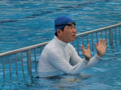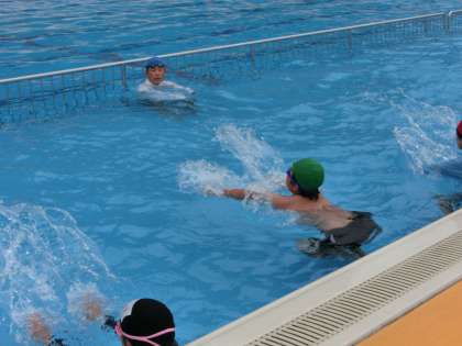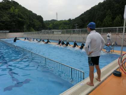 今日は、水泳指導の講師の先生に来ていただき、指導をしていただきました。講師の先生は、今年ね3年目ということで、子どももたちの成長の姿を実感されていました。