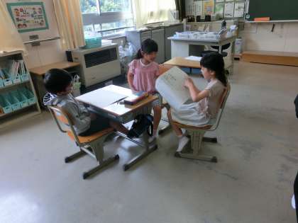 今日の国語は、説明の良いところを見つけようということでグループで話し合ったり、元気に手を挙げ、意見を発表をしたり、活発な授業でした。どの説明が良かったかな。