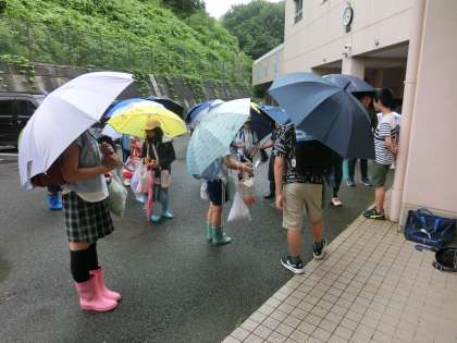 写真は下校時の集合の様子です。今日で6月の登校は最終日です。しばらくは雨の中の登下校になりますが、雨天時の登下校についてもご配慮ください。