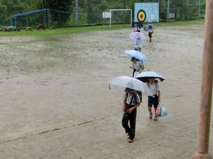 7月に入りました。と同時に1週間の始まりです。あいにくの梅雨空のもと登校してきました。昇降口で出迎えて声をかけると疲れた様子もなく本当に元気でした。「全然疲れないよ」という声には驚きです。