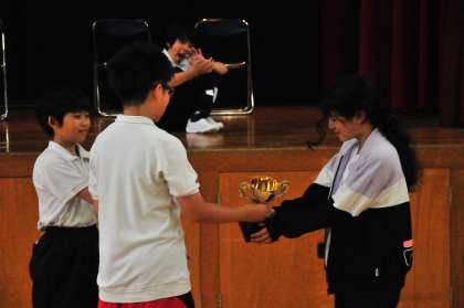 今日は、その中のT・Tポーズがどれだけ長い時間持続できるか大会行いました。写真は、今日のチャンピョンの表彰の様子です。