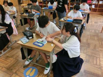 今日の5年生の家庭科は、手縫いの実習です。地域ボランティアの協力を得ながら学習ができました。ていねいに見ていただきありがとうございます。