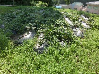 厚い1日となりました。イモ畑に行くのにも一汗かく天候です。50日を過ぎ、苗が大きくなったので、撮る角度を真上からにしました。