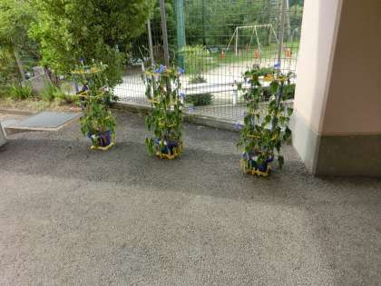 1年生のアサガオは、昨日の暑さでぐったりです。
