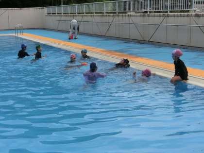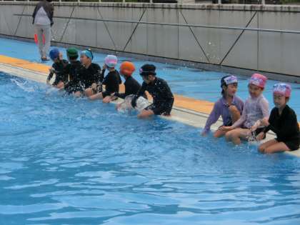 1・2年生の水泳の学習です。みんな、プールが大好きです。しっかり先生の指示を聞いて楽しく学習をしていました。今日のプールの水温はまるで温泉です。