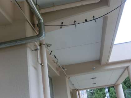 校長室の窓の外、軒下からツバメの鳴き声がしていました。雨宿りをしているようです。