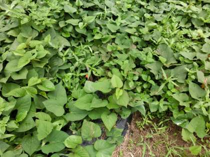 3連休明けの観察です。60日を超えました。学校中の草花の成長が著しいです。イモの方は、観察の目印が見えなくなってきました。