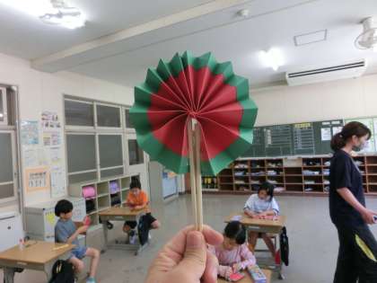 今日は、2年生の図工の様子です。折り曲げて、折り曲げて、さあ何ができるかな。