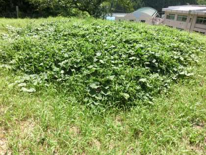 夏休みに入り、イモ畑に行く回数が減りました。猛暑の中ですが、観察に行くと暑さに負けず、勢いよく育っています。観察イモと他のイモの区別が全くつかなくなりました。