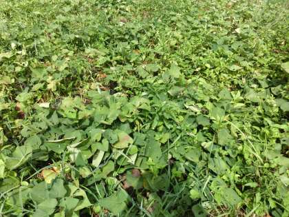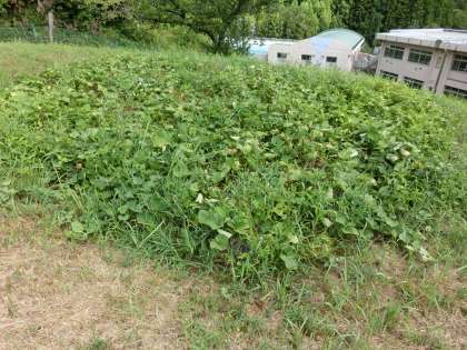 盆休み明け、久しぶりにイモ畑の観察に行きました。今朝方のあめのおかげで葉は元気ですが、秋に向かって葉っぱの色が秋めいてきました。もうすぐ100日目になります。地中には、どれだけのイモの実ができているか楽しみです。