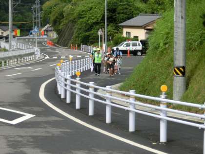 写真1 穂積地区の登校の様子(遊具の工事期間中は正門を利用します。)
