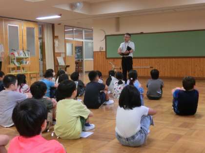 本校児童は、学校の再開にあたり、一人の欠席者もなく、全員元気に登校してきました。長い、猛暑続きの夏休みでした。保護者の皆様、地域のの方々へは感謝申し上げます。