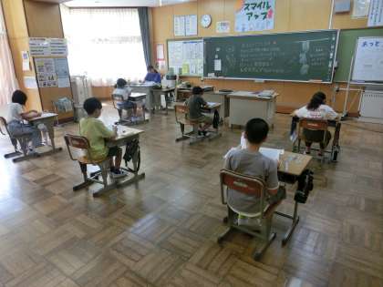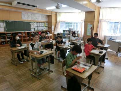 4年生から6年生は、さすがです。すぐに本格的に授業がスタートしています。どの学年も落ち着いて学習ができていました。4年生は、早速、確認テスト、5年生は、国語の授業です。一人も忘れ物がなく素晴らしです。6年生は、タブレットを使っての調べ学習です。