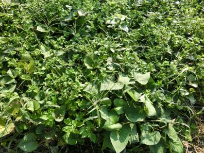 早朝の観察です。この季節になると早い時間には、朝露に濡れしっとりしています。雑草交じりですが、元気に育っています。