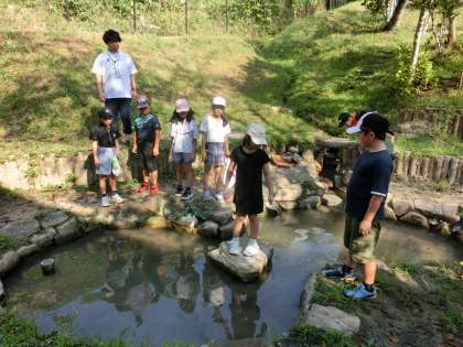 3年生が朝の草取りをしてくれたので、少しだけ時間を使い、素敵な場所へ招待しました。校長先生が春先から整備(再生)に手掛けている幸海ファミリーパーク内の「イケイケ池」に招待しました。朝の涼しいい時間帯でとても気持ちのいい場所です。