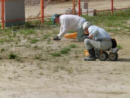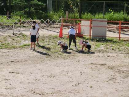 そのあとは、校内整備員さんが引き続き作業を行っています。たくさんの方の協力で運動場がきれいになっています。