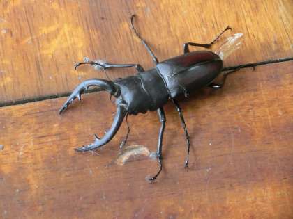 昨日の敬老の日を含めた3連休が明けました。朝から今日も強い日差しとなっています。子どもたちは元気に登校してきました。朝一番で職員室に入るとどこから侵入したのかノコギリクワガタが床は這っていました。3日間、職員室で過ごしたのでしょうか。少し弱っていたので外へ逃がしてあげました。