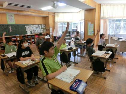 5年生の国語の授業は、話し合いの仕方についてふりかえる学習をしていました。みんな積極的に挙手をして発言をする姿が見られました。どんな話し合いの仕方がよかったかな。