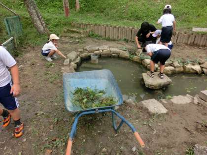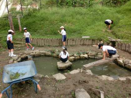 今秋から3年生が朝の活動で「イケイケ池」の周辺の草取りをしています。少しずつきれいになってきました。今日は、その池にメダカを放流しました。地域学校共働本部のコーディネーターさんのご厚意です。ありがとうございます。3年生の児童は大喜びでした。