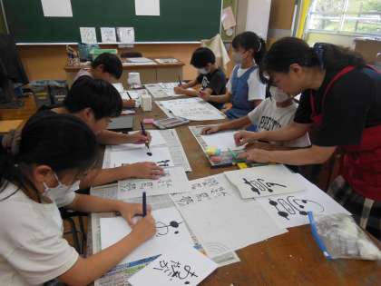 9月30日(月)はクラブ活動の日でした。本校には、己書クラブというクラブがあります。地域の講師の指導のもと、子どもたちは真剣に筆を走らせています。どの子も真剣に素敵な作品に仕上げていました。