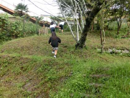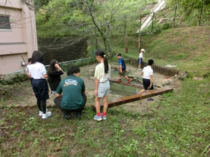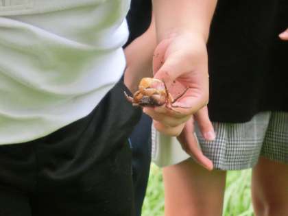雨上がりの朝ですが、3年生の児童が草取りに来てくれました。先日のPTA奉仕作業のおかげで池の周辺もきれいになり、活動が減ってしまいました。せっかく来たので周辺を散策し、サワガニを捕まえて大喜びです。