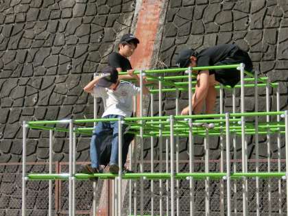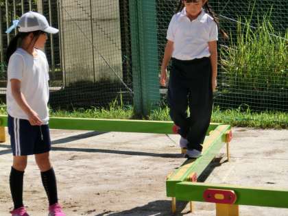 秋晴れのいい天気になりました。子どもたちは、元気に外遊びをしています。学年、男女混じってのサッカーをたり、ジャングルジム、ブランコなど思い思いに遊んでいます。