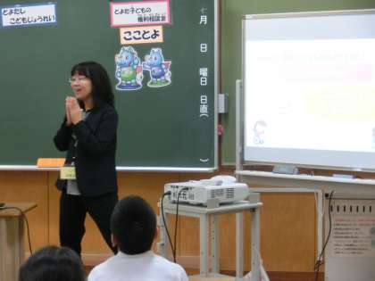 今日は、こども・若者政策課から講師をお招きして人権について考える学習をしました。