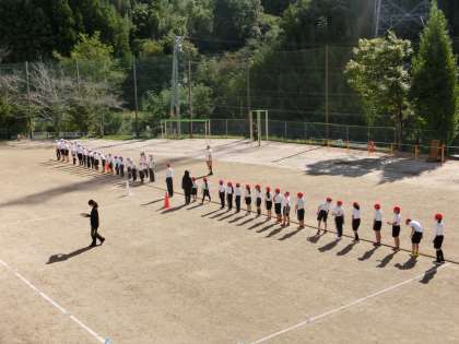 運動会に向けての1回目の全校練習を行いました。1時間目は、開会式、閉会式の練習を中心に全校での並び方の確認をしました。2時間目は、赤白対抗の綱引きの練習です。入場や退場の練習の後に実際に競技をしました。今日は、紅組が勝利しましたが、本番はどうなるでしょうか。