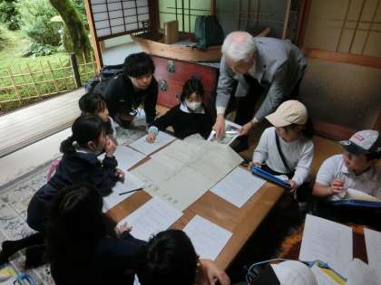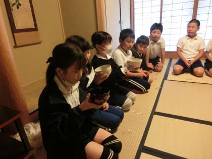 昔、幸海小学校前の県道は「塩の道」と呼ばれ、三河湾から内陸部へ塩や干物など海産物を運ぶ重要な路線だったといわれています。今日は、当時から旅館を営んでいたお宅へ訪問し、当時の様子やそのころの暮らしについて学びました。みんな真剣な様子で話を聞くことができました。最後は、裏千家茶室にて薄茶を頂きました。ご協力を頂きました講師のみなさんありがとうございました。
