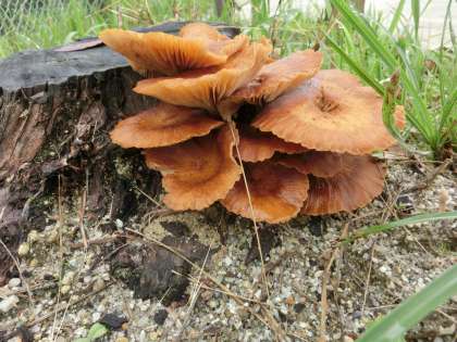 一週間が始まりました。週末には、各地で運動会や秋のお祭りなどが開かれています。幸海小学校では来週末11月9日(土)に地域共催型の運動会を予定しています。少しずつ全校での練習を予定していますが今週は少し天気が心配です。今日の予定の全校での練習も延期しました。少しでも運動場が使用できないか確認しましたが厳しい状況でした。運動場を確認中に2種類のキノコを見つけました。