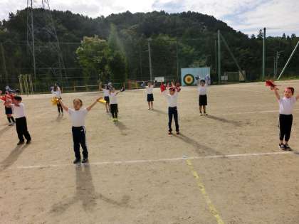運動会まで1週間になりました。今日は、1から3年生の演技の下見会を行いました。校長先生と教頭先生に演技を見てもらいました。みんな元気いっぱい踊っていました。校長先生と教頭先生からは、あと1週間で気を付けてほしいアドバイスをいただきました。