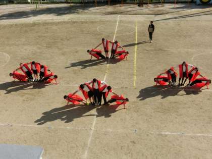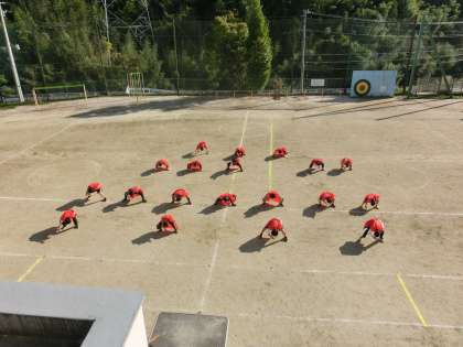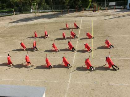 午後からの強い日差しのもと、高学年演技の下見会を行いました。オープニングから最後までの通しの発表です。校長、教頭、教務の先生からお褒めの言葉とアドバイスをいただきました。本番まであと3日です。すばらしい出来栄えです。お楽しみください。