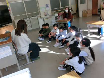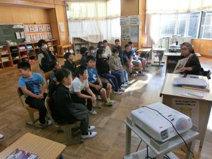 今朝は、月に1度の読み語りの日です。今回は、低中高学年の3教室3名のボランティアに来ていただきました。いつも楽しいお話ありがとうございます。
