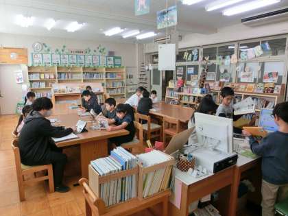 今週も最終日、11月も終わります。朝からまぶしい日差しが差しています。図書館では3・4年生が静かに読書をしています。どんな本を読んでいるのかな。