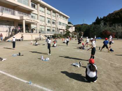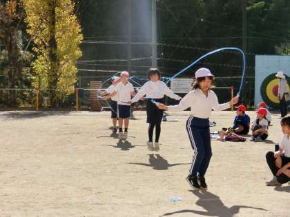 いよいよ、なわとび大会です。各学年に分かれた様々な跳び方に挑戦です。