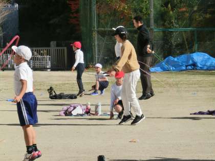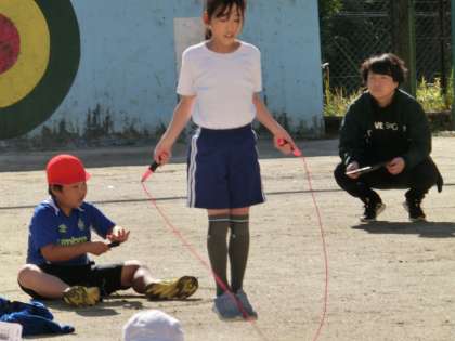 学年ごとのあとは、全員、保護者も参加で前跳びです。誰が最後まで残るかな。
