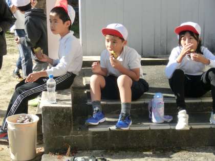 なわとび大会のあとは、楽しみにしていた焼いもです。おいしく焼けているかな。焼いてくださった職員のみなさまありがとうございました。