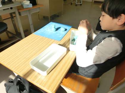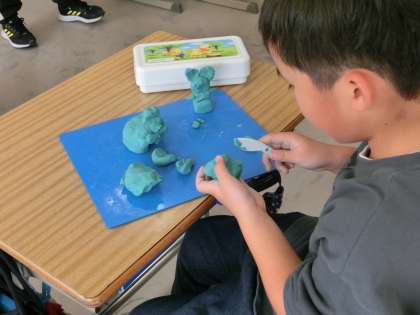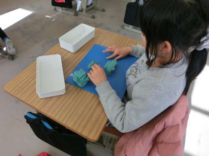 2年生の図工は、年度遊びです。ねんどを使い思い出を形にしようと悪戦苦闘です。どんな思い出を形にするのかな。