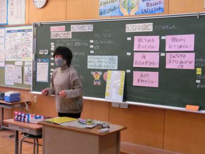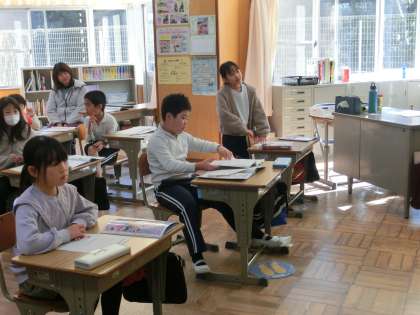 3年生の教室では、養護教諭による保健の授業が行われていました。「けんこうな生活」と題して、間もなく冬休みを迎えます。健康とは何か、健康な生活を送るにはどのようなことに気を付ければよいかなどをていねいに教えていただきました。寒くなっています。風邪をひかないような元気な体をつくりましよう。