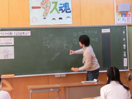 「コーピング」という言葉をご存じですか。5年生の保健では、保健の先生とスクールカウンセラーによるストレス解消方法の学習をしました。保健の先生から「コーピング」についてお話を頂いた後にスクールカウンセラーの専門的な立場から小学生のこの時期とこれからの様々なストレスへの対処方法について実践を交えながら学びました。少しでもストレスを解消し楽しい学校生活が送れるといいですね。