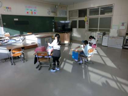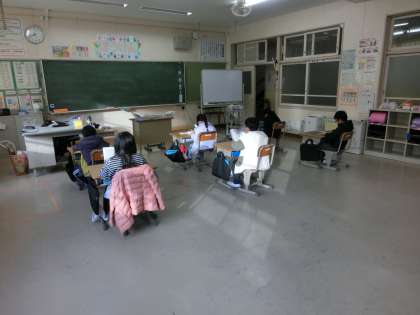 月曜日の朝、フッ素洗口を行います。時間までみんな読書や学習の準備をして静かに待っています。