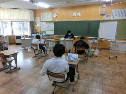 午後からの教室をのぞいてみると3年生は学級でのお楽しみ会の計画と準備に楽しそうでした。6年生は幸海の歴史について調べ学習をしていました。担任の先生も松平町誌や幸海小学校の周年記念誌を使って調べ学習をしていました。