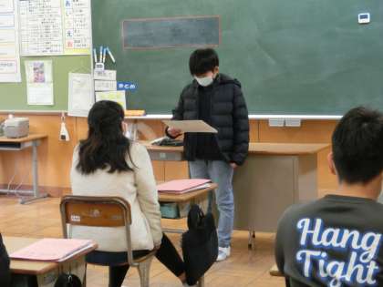 今朝も朝の各教室の様子です。落ち着いて朝の読書、朝の会では、代表児童によるスピーチタイムです。スピーチの後は聞き手からの感想の発表もありました。「大きな声で前を向いて話していました」と感想を発表していました。
