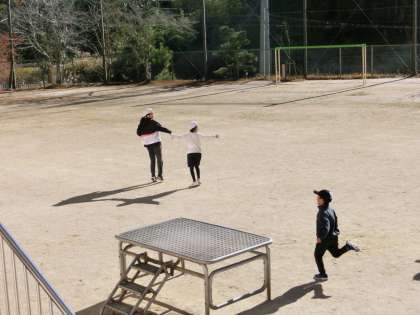 今日もいい天気になりました。なかよしタイムの運動場から子どもたちの元気な声が聞こえてきました。先生も一緒になって走り回っています。