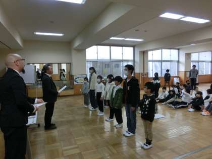 冬休み前集会では、遅くなりましたが、各種表彰伝達をしました。入賞したみなさんおめでとうございました。