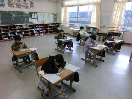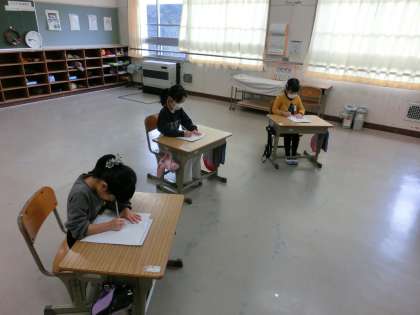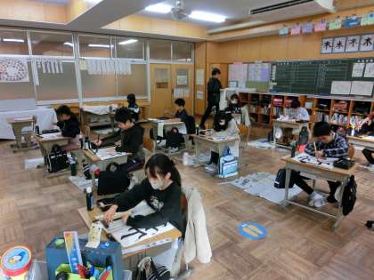 全校集会の後は、書き初め大会です。年末から一生けんめい練習してきた成果を発揮できるようがんばりました。
