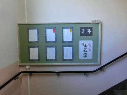 1/8 書き初め大会の作品が掲示されました。1・2年生