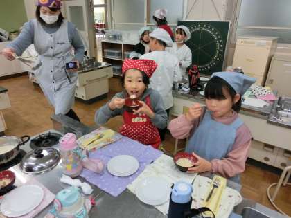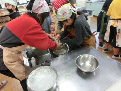試行錯誤しながらなんとか豆腐らしい硬さになり、試食です。「とーふだ」と思わず声が出ていました。お疲れさまでした。
